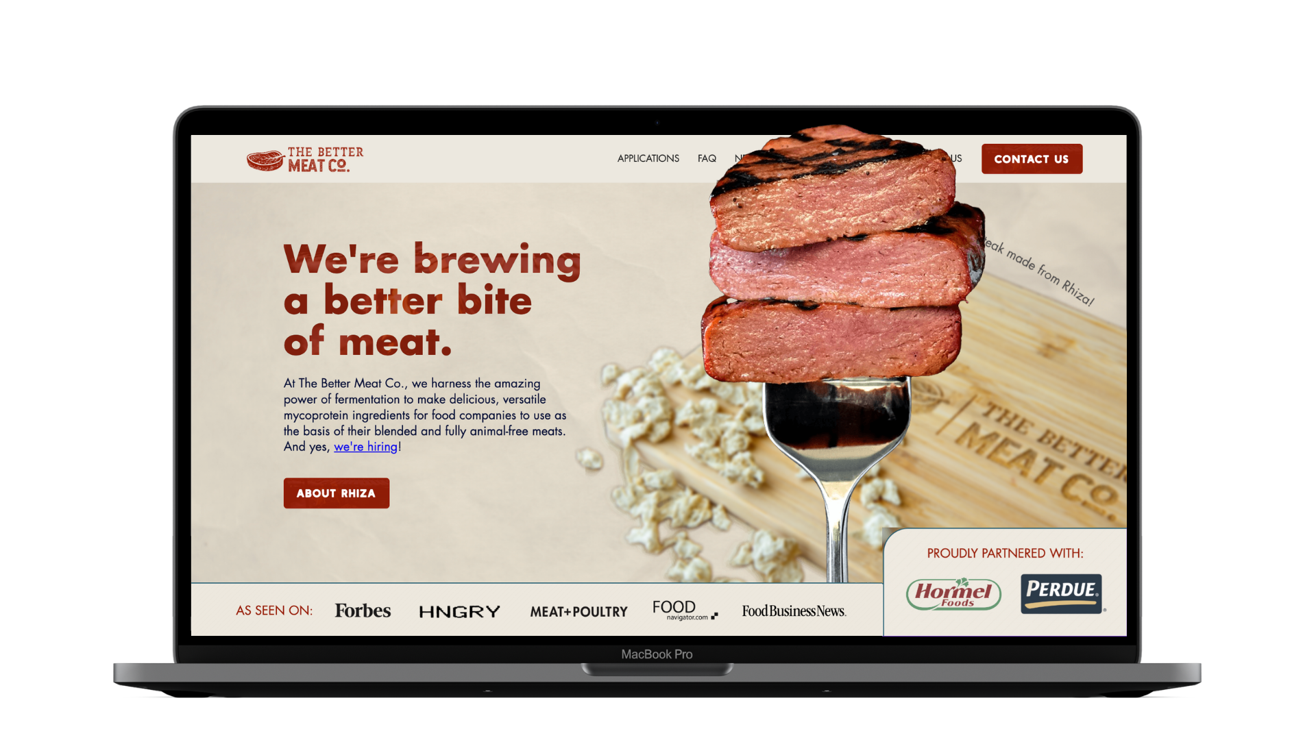The Better Meat Co.'s Squarespace site served them well in their first year or two, but as they launched Rhiza and pitched their product to massive conglomerates, it was time to upgrade to a custom Webflow site.